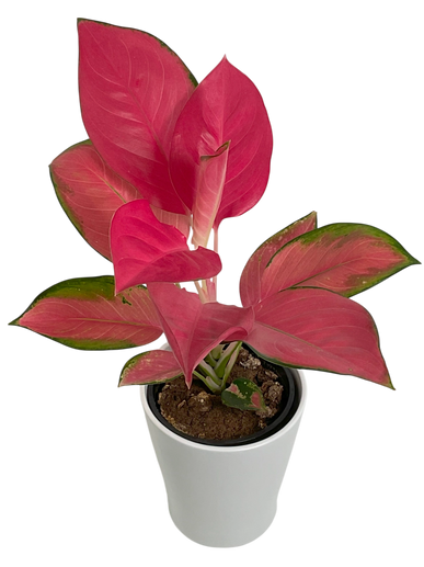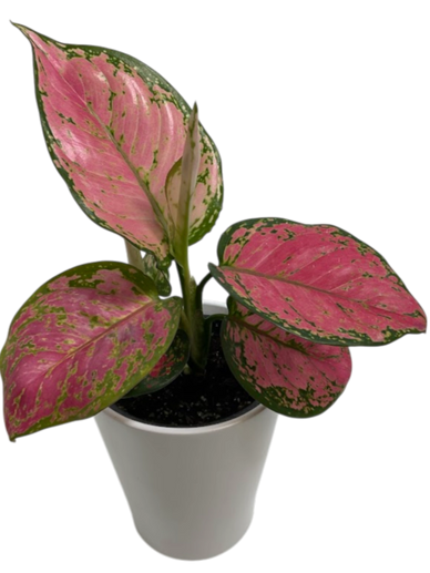 An aglaoenama with lush green leaves tinged and veined with bright bubblegum pink.