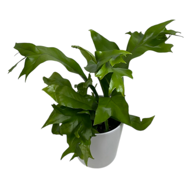 A philodendron with long, narrow leaves that split into skeletal lobes.